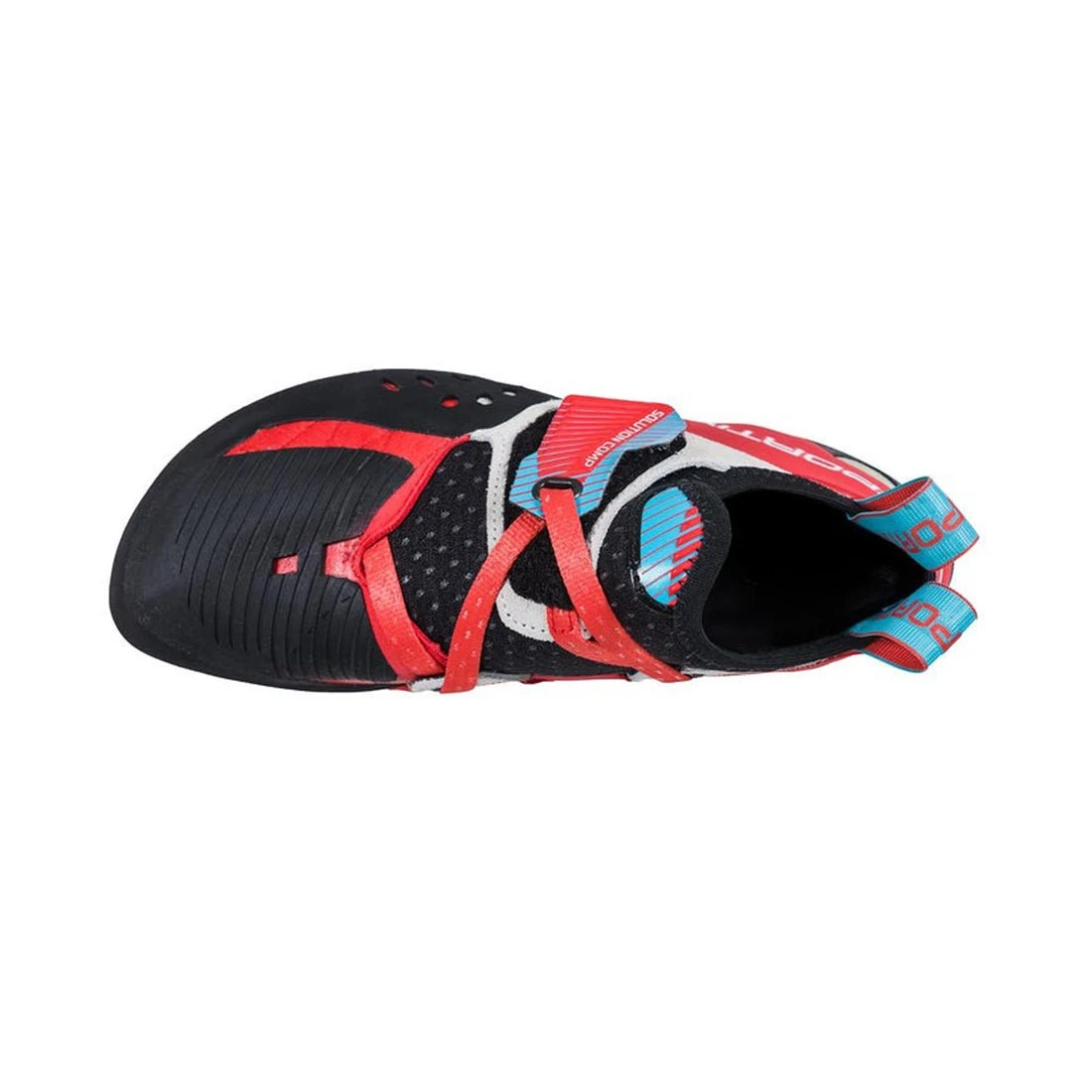 Solution Comp is the climbing shoe designed for maximum performance in climbing competitions. Originating from the famous Solution climbing shoe, it boasts greater coverage at the front thanks to the rubber toe cap designed for toe hooks on overhangs and it has a more tapered heel to favor heel hooks on micro-holds. Perfect distribution of tension is guaranteed thanks to the P3 System technology which allows to maintain the shape over time. Solution Comp is a soft, precise, very elastic, and reactive shoe: developed thinking of the movements of climbers on the volumes that today characterize indoor structures. The lacing is precise and quick thanks to the Fast-Lacing system. It has a lock –harness construction for perfect binding of the foot. The XS-Grip2 sole provides maximum grip for a precise and safe climb. Solution Comp: the solution is in the name.