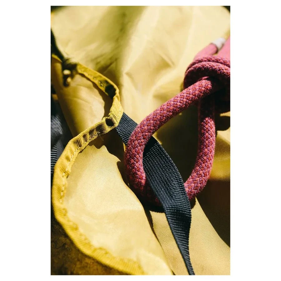 Built from robust 420D nylon, the Slacker comes with an adjustable shoulder strap, carry handle and 360-degree compression straps for a sleek aesthetic and tidy carry. The Slacker climbing rope bag also uses metal buckles for durability and ease of use, as well as reduced seams to maximise strength and longevity. Designed to accommodate an 80-metre rope, the integrated tarp with colour-coded loops keeps your rope tangle-free until you’re ready to climb.