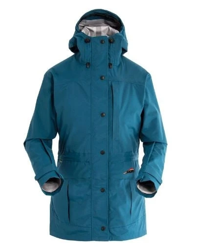 The women’s Siena jacket is a refined, all-purpose 3/4 length bushwalking rain jacket that is equally practical around town or travelling. Featuring a three-piece storm hood with multi-point adjustments, a triple storm flap system to protect the front zip from downpours and a waist draw-cord adjustment that is neatly concealed away in the lower front pockets reducing potential snag points. Tested in the worst imaginable conditions, the mid-weight Hydronaute 3 layer fabric offers outstanding breathability and waterproofness while being durable enough to withstand the long-term use of heavy backpacks and offering a high level of pin-hole resistance making it an ideal choice for bushwalking.