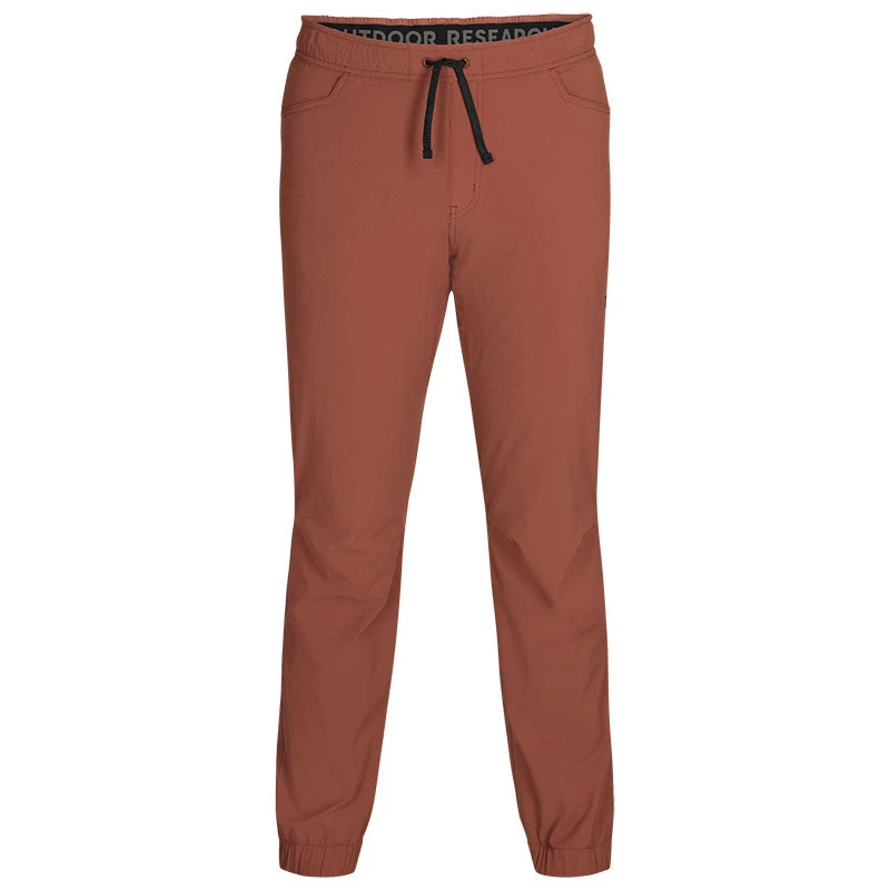 Ample pockets, a harness-compatible waist, and articulated knees prepare you for multi-pitch climbs, long approaches, or hikes. This updated jogger style adds a faux fly, an elastic waist with exterior drawcord, a tapered calf with inner ankle elastic, and a gusseted crotch for mobility with every stride.