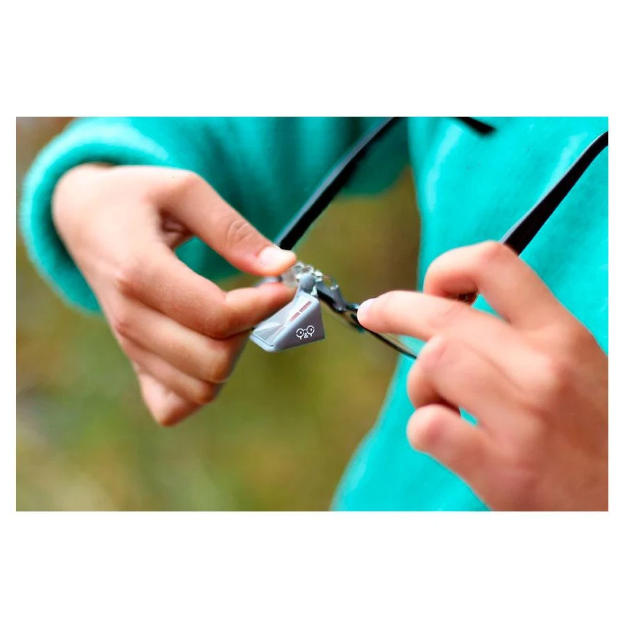 It fits on most glasses and sunglasses and with a small movement, it can be switched between the positions Off and On.